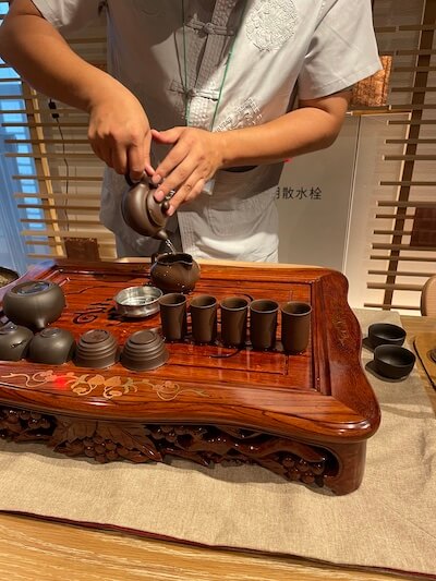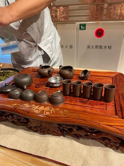 中国茶といえば、この茶器セットですよね!木の台の上に、おままごとのような小さめの茶器。台湾の家庭では、この茶器セットが出しっぱなしだそうで。家族でおしゃべりしながらずっと飲んでいるそうです。