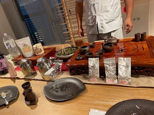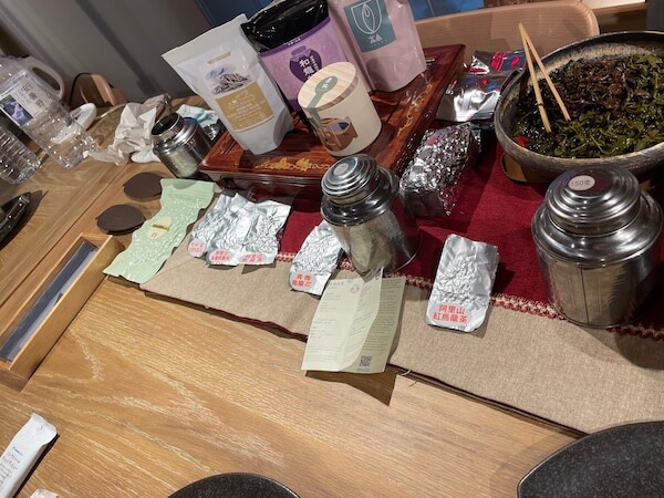 前述のお茶の他にも、バニラのような香りがする金萱茶、京都伏見の和龍茶、ジャスミン茶など、合計7種類のお茶をいただいて大満足!