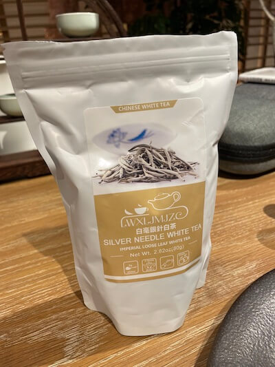 白毫銀針茶(はくごうぎんしんちゃ)をいただきました。英語ではシルバーニードルホワイトティー。「白茶」として有名なお茶で、台湾ではなく、雲南省産になります。