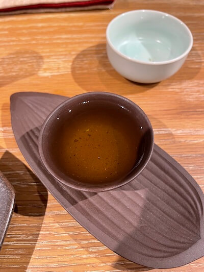 田淵さんによると「中国茶は香りを楽しむスタイルで、日本茶は飲むと旨みがバ〜ッと広がる気がします」とのこと。細長い聞香杯(もんこうはい)に一度注ぎ、香りを楽しんでからいただきます。聞香杯の聞…って嗅ぐ、のことですよね。中医学の聞診といっしょ!