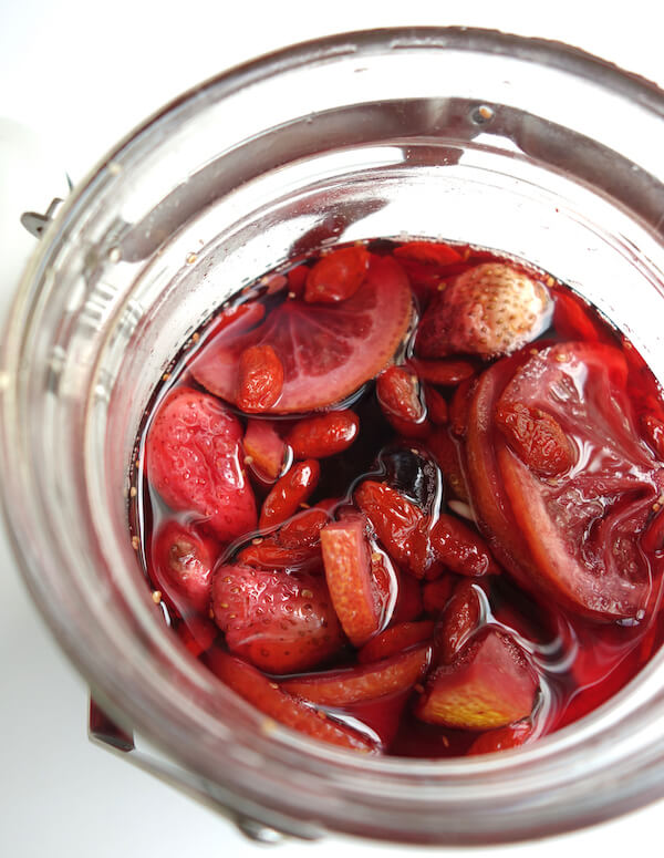 クコの実、いちご、砂糖、レモンを漬けてシロップごといただきます。