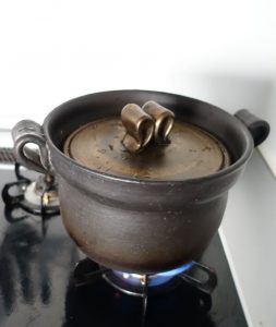 さあ、ご飯土鍋がボコボコと沸騰してきたら、火を止めて、蒸らして10分ほど。