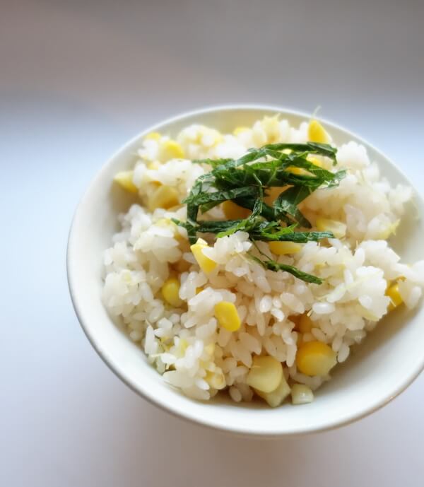 口の中でホクホクごはんと、甘み豊かなとうもろこしの実がプチプチはじけて、とっても幸せな気分です♪