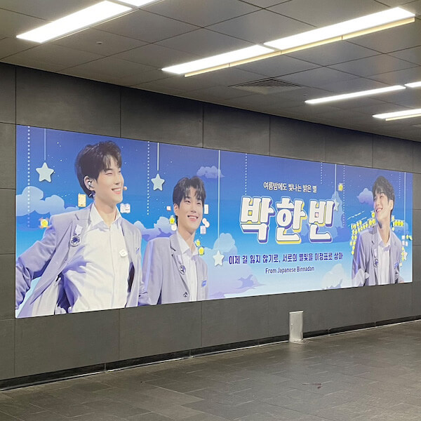 韓国は、ファンが地下鉄の駅などの媒体を借りて広告を出す文化があって、いわゆる人気のバロメーター。アプリで投票して勝ち取れば広告が出せるという企画も日常的に行われています。