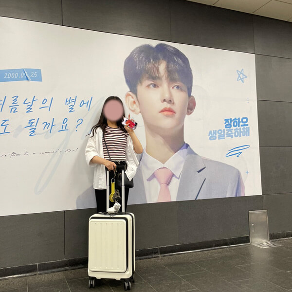 企業の広告は、女子アイドル(IVEが多かった)の起用が多くて、ファンが出す広告は男子が多めなのかなーとぼんやり眺めながら宿へ向かいます。