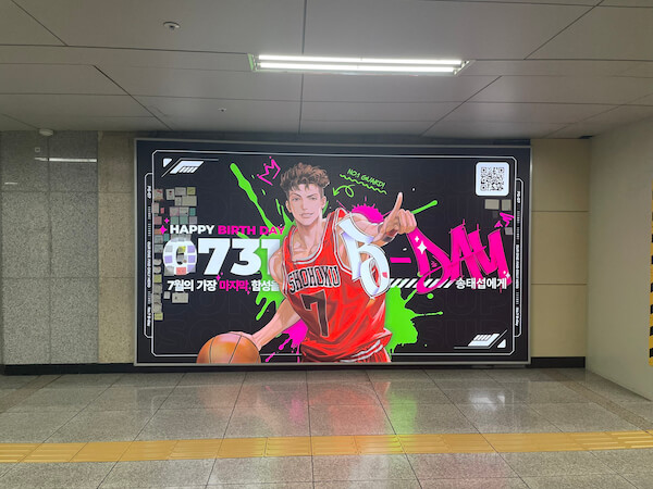 韓国ではスラムダンクなど日本のアニメが人気だそうで、こうやってファンによる広告が出されているほどなんですねー。日本のアニメのキャラクターの誕生日を祝う広告を、ファンが出すってすごいですよね!