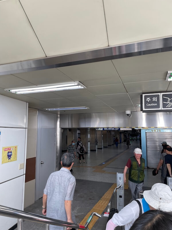 地下鉄の駅の構内から、高齢者が多い!若者の街・明洞とは明らかに客層が違います。