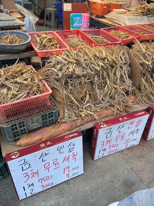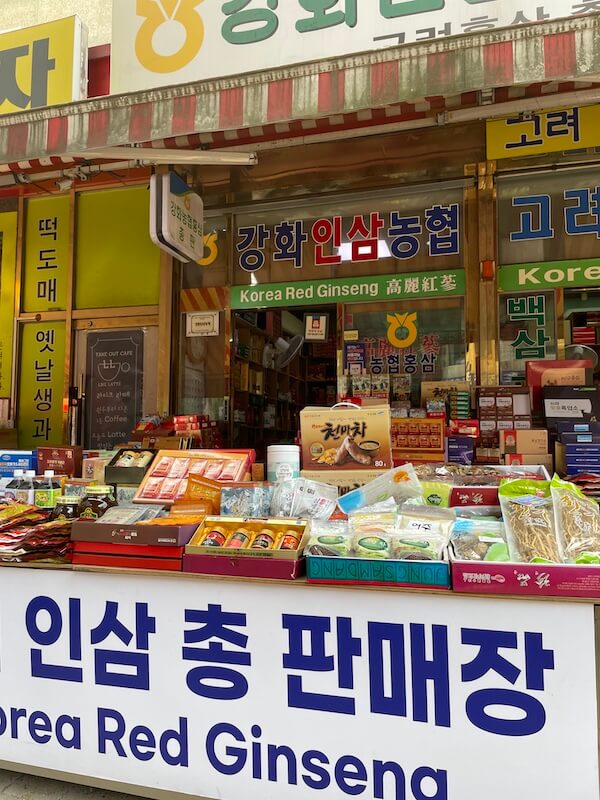すごい数のお店が並んでいますが、とにかく高麗人参を売り出しているお店をよく見かけました。紅参の専門店も多い!