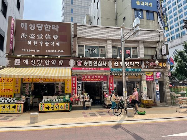 韓国最大の韓薬剤市場。韓方(漢方)に関する生薬や食品、韓方医院などもある場所。 - ここには朝鮮時代に、貧しい人々のための医療機関「普済院(ポジェウォン)」があり、当時から韓方専門の特殊市場として栄えてきた歴史があります。