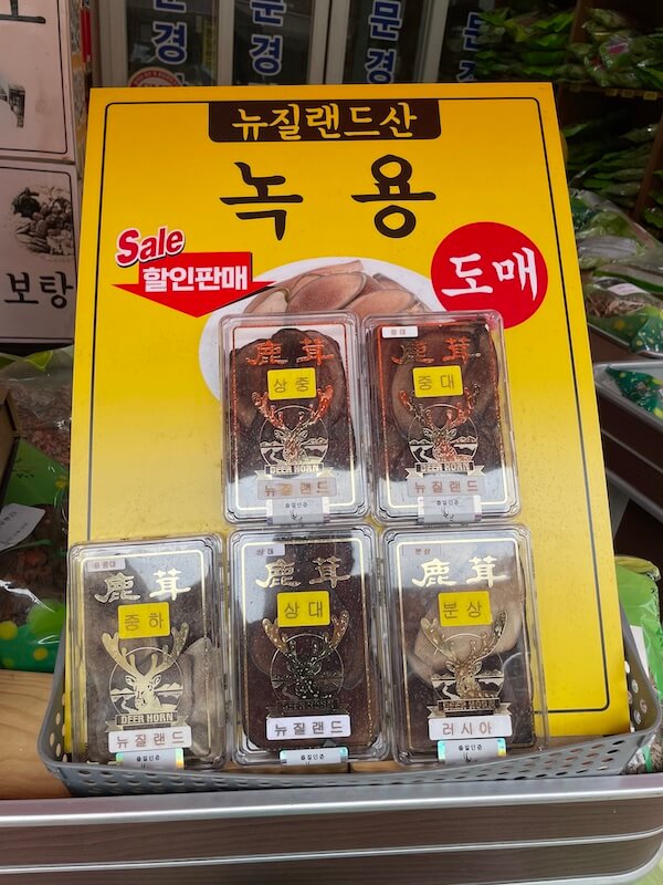 こちらは、鹿茸(ろくじょう)です。韓国の方はよく取り入れるようで、鹿茸のサプリは韓国アイドルも健康のために飲んでいたりします。ちなみにこの鹿茸はニュージーランド産のようです。