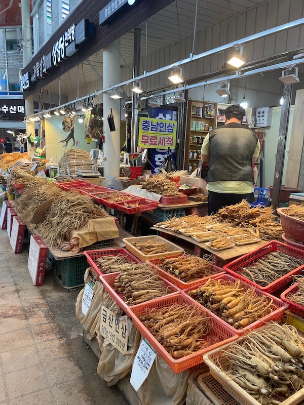 高麗人参ゾーンにやってきました。ズラーーっと高麗人参のお店が続いています。