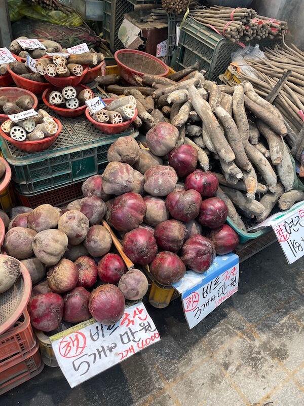 こちらもすごく大きな市場で、さきほどの薬令市場が生薬の市場なら、京東市場は庶民の食の宝庫。約10万平方メートル(東京ドーム約2個分)におよぶ広大なエリアにまたがっているそうです。