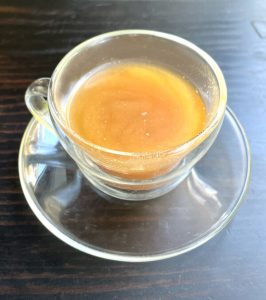 冷たいスムージー風のスイカジュース。養生を意識してふだんはなるべく冷たいものを飲まないのですが、炎天下だから例外です。冷たいジュースが染み渡りました。冷たいものも時と場合によってはOKだなと実感。